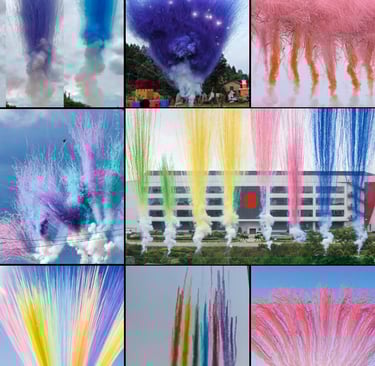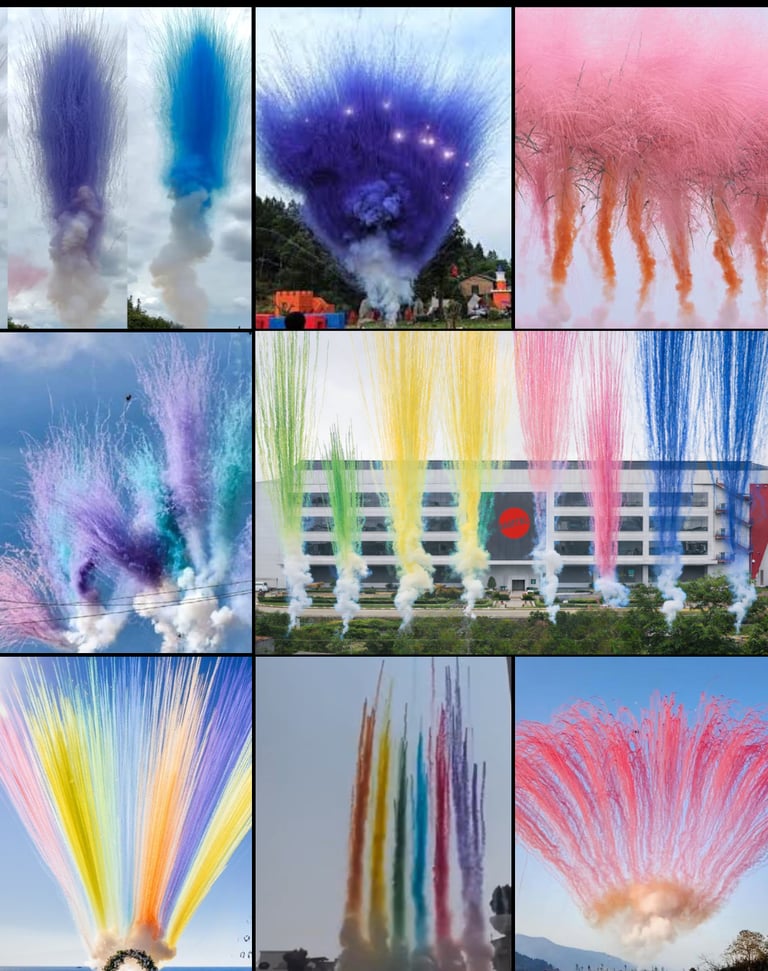 Efek Kembang api siang hari dengan efek warna, asap, dan formasi visual