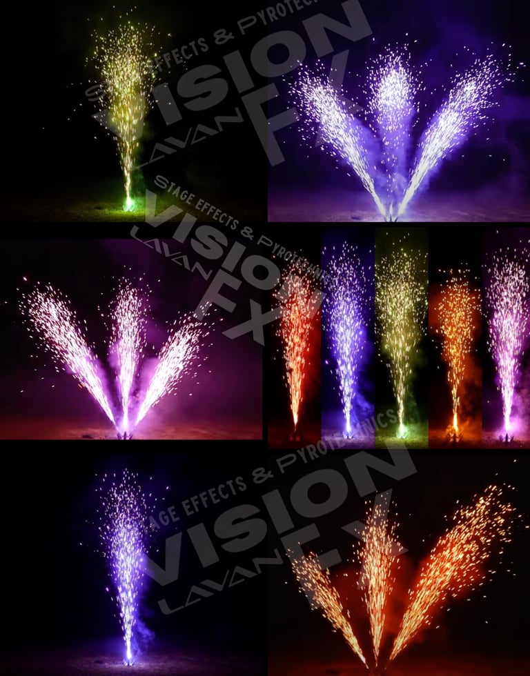 JENIS KEMBANG API YANG DIRANCANG AMAN UNTUK DIPASANG DEKAT PERFORMER. MINIM FALLOUT, TIDAK ADA LEDAKAN ATAS DAN TINGGINYA PASTI TERKONTROL. THESE ARE PERFECT FOR CONCERTS, FESTIVALS AND SPECIAL PERFORMANCES.